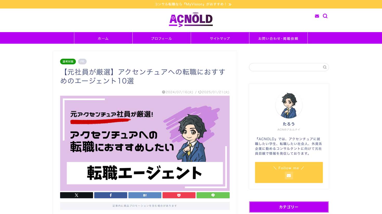 外資系コンサルティングファーム、アクセンチュアへの転職を志す人、外資系コンサルティングファームのコンサルタントに向けた情報を発信する専門メディア『ACNORD』にておすすめの転職エージェントとして弊社が紹介されました。