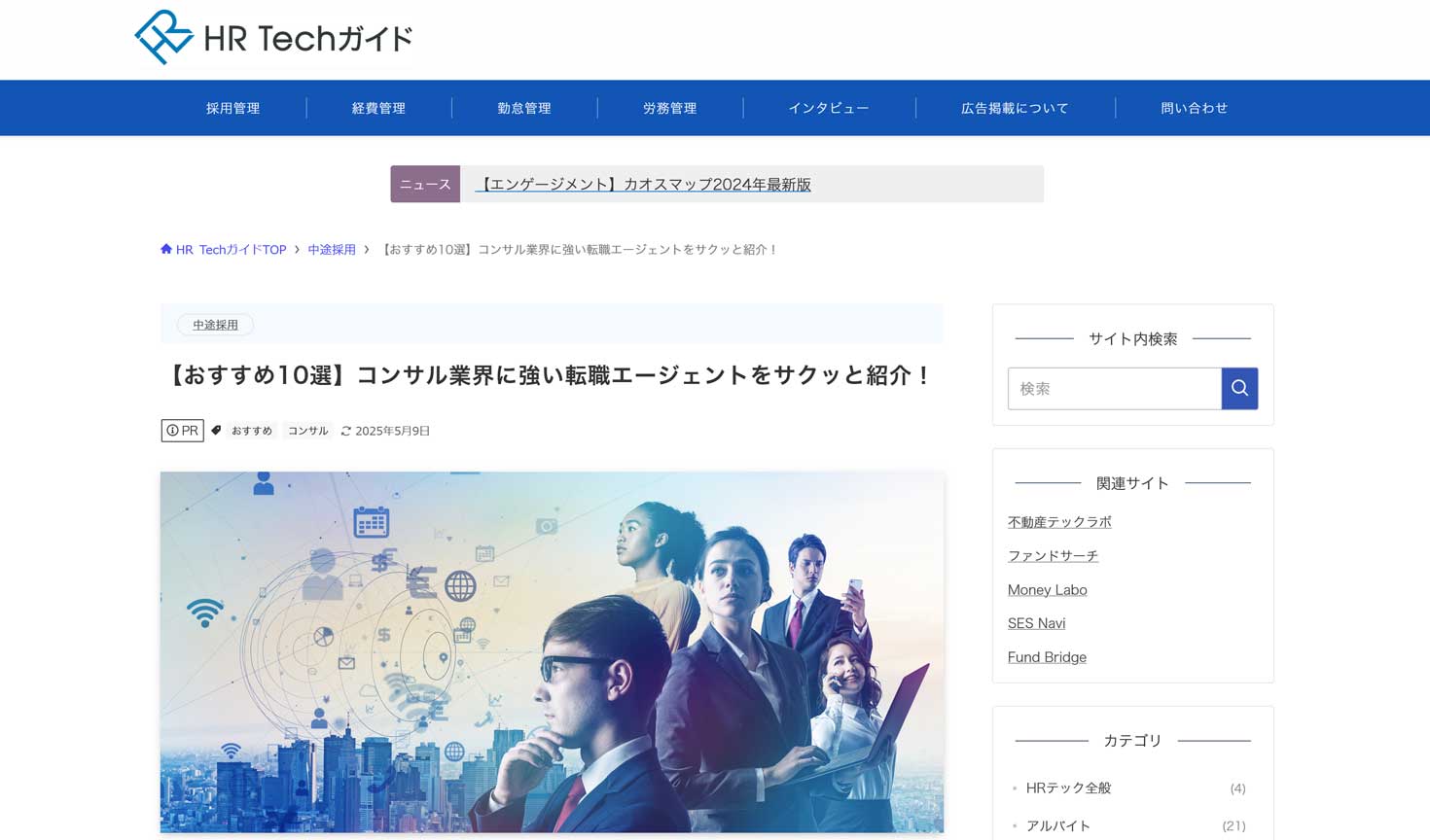 『HR Techガイド』にて弊社が「コンサル業界に強い転職エージェント」として紹介されました